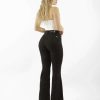Jeans Flare Rio de Janeiro Black con aplicaciones de estribos dorados a los costados. Un boton con cierre de cremalleta.
